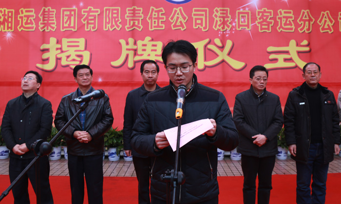 1月19日上午,湘運集團有限責(zé)任公司淥口客運分公司舉行揭牌儀式。揭牌儀式上,湘運集團董事長朱聃致辭,株洲縣交通運輸局局長易國林作重要講話,淥口客運分公司經(jīng)理王紹輝致答謝詞。株洲縣人民政府副縣長劉行國、集團公司董事長朱聃揭牌。湘運集團黨委書記、總經(jīng)理朱遠(yuǎn)東和其他領(lǐng)導(dǎo)出席揭牌儀式。