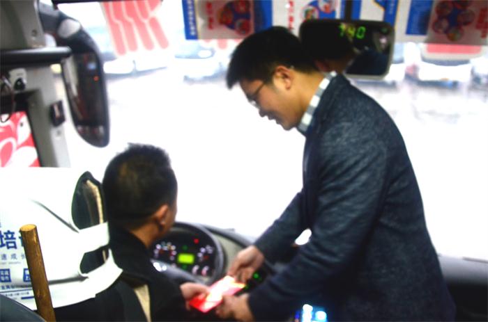 凌晨6:50時,董事長一行來到了長途汽車站,“同志們,辛苦了,大家新年好!我給大家拜年了!”董事長跟員工們一一握手問好,向員工們送上了祝福。員工們自發(fā)的站成一排,向董事長問好,拜年。7:18時,董事長登上發(fā)往長沙的班車,給旅客和司機送上了新年的祝福,并囑咐司機下雨一定要注意行車安全,并目送班車駛出車站。
